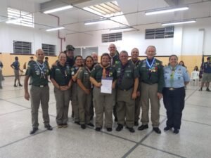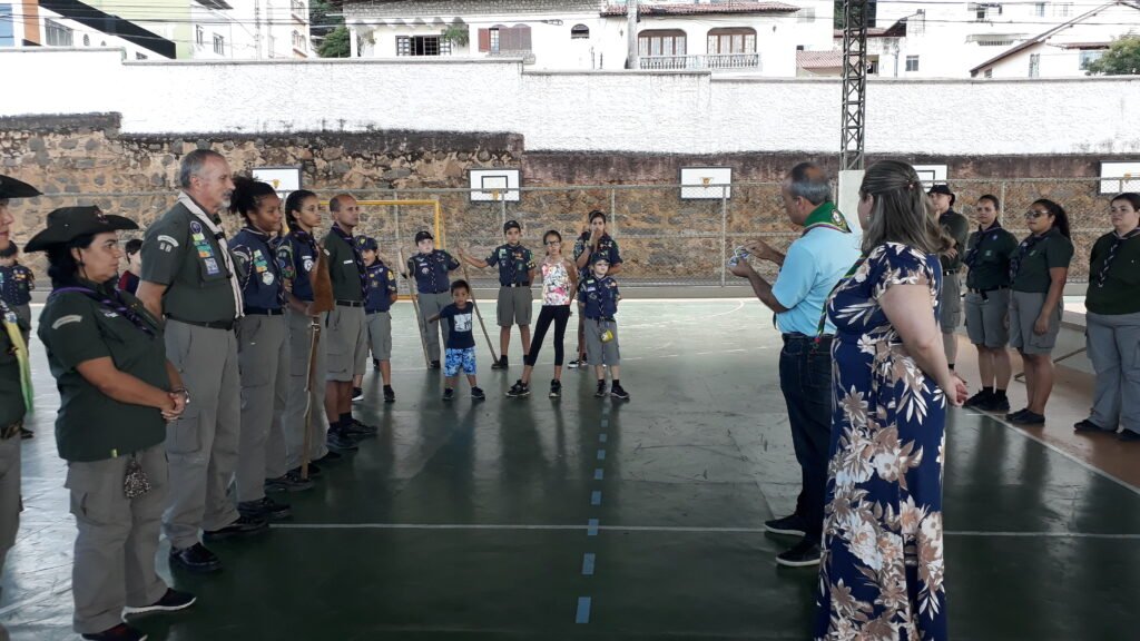 rádioamador e colaborador do movimento escoteiro e o Maj EB COM, ARTHUR PAULO PIMENTAL PINTO JÚNIOR, antigo escoteiro do 2º G/MG CAIUAS, acompanhado de sua esposa. Seguiu-se então a 2ª parte da cerimônia, pediu a palavra o Ch LANDER e juntamente com o Ch IGNÁCIO realizaram a entrega das contas e do lenço da Insígnia de Madeira ao Ch ANDERSON. Logo após foram entregues os certificados de tempo de atividade aos chefes GEORGEMAR GUIMARAES, ANA PAULA LIPPE, VALÉRIA CARDOSO OLIVEIRA SOUZA e LUIZ CARLOS DA SILVA. Passou-se a entrega do Distintivo de Escoteiro Lis-de-Ouro ao jovem BERNARD MARTONI MANSUR CORREA DA COSTA.