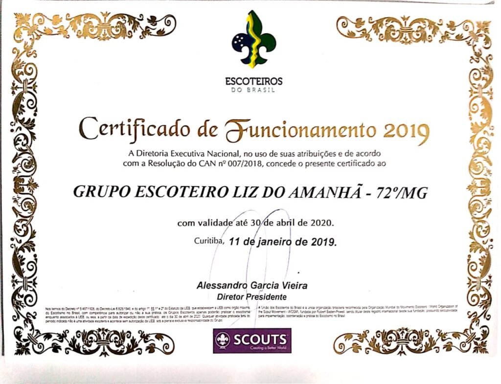 No dia 27 de fevereiro de 1991, o Grupo Escoteiro Liz do Amanhã, recebe oficialmente o certificado de reconhecimento pela UEB – União dos Escoteiros do Brasil, documento este que habilita ao trabalho de formação extra-escolar.