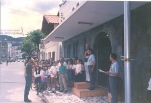 20 DE JUNHO DE 1998 – Este dia foi marcado pela inauguração das novas instalações do grupo escoteiro. Presentes ao evento o fundador do grupo escoteiro – PADRE E MAJOR DO EXÉRCITO BRASILEIRO – LINDENBERG FREITAS MUNIZ, Ch IGNÁCIO VILOMAR CASTANON DE MATTOS, Ch ALCIONES AMARAL, Ch WUPPSLANDER ATALIBA LAGE, representantes dos grupos escoteiro JOÃO XXIII e FREDERICO OZANAM, Associação Machester de PX e Associação de Rádioamadores de Juiz de Fora, representando o Comandante do 10º Batalhão de Infantaria Cel GUERRA, o Asp Of Med WLADYMIR daquela OM. A Cerimônia iniciou-se as 15:20 com a chegada do Fundador do grupo. O Pe LINDENBERG foi recebido com honras escoteiras por uma ala formada por todos os integrantes do grupo no corredor principal que dá acesso a nossa sede. Feitas as honras todos se aproximaram da porta da sede. Foi lido um histórico sobre os 8 anos do grupo escoteiro e logo após o Curriculum Vitae do Pe LINDENBERG. Seguiu-se então a inauguração da sede. Para descerrar a placa e cortar a fita foram escolhidos o Pe LINDENBERG fundador do grupo e o Ch LANDER, que em 1990 quando o grupo foi fundado era o Comissário Distrital do 2º Distrito Escoteiro de Minas Gerais. Logo após seguiu-se uma visita as instalações por parte dos participantes da cerimônia. Neste momento chegaram para a cerimônia o companheiro ALEXANDRE VAGNER DE OLIVEIRA,